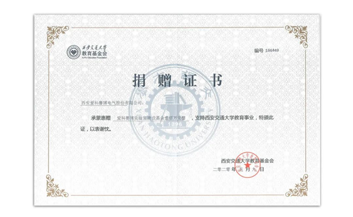 2020年5月,西安愛科賽博電氣股份有限公司向西安交通大學(xué)教育基金會(huì)捐贈(zèng)人民幣100萬元整,助力電氣學(xué)院工業(yè)自動(dòng)化系在中國西部科技創(chuàng)新港的實(shí)驗(yàn)室建設(shè)。2019年11月,西安愛科賽博電氣股份有限公司與西安交通大學(xué)簽訂戰(zhàn)略合作協(xié)議,建設(shè)“西安交大—愛科賽博”先進(jìn)電力電子裝備研究中心。該研究中心依托西安交大西部科技創(chuàng)新港的研究平臺(tái)和西安愛科賽博公司的產(chǎn)業(yè)化平臺(tái),致力于電力電子裝備領(lǐng)域關(guān)鍵核心技術(shù)和基礎(chǔ)共性技術(shù)研究,打造集研究開發(fā)、成果轉(zhuǎn)化和社會(huì)服務(wù)等多功能于一體的研究中心。本次捐贈(zèng),是落實(shí)校企雙方合作的具體舉措,旨在加強(qiáng)公司與學(xué)??蒲泻献鞯纳疃龋πF螽a(chǎn)學(xué)研合作再上新臺(tái)階。