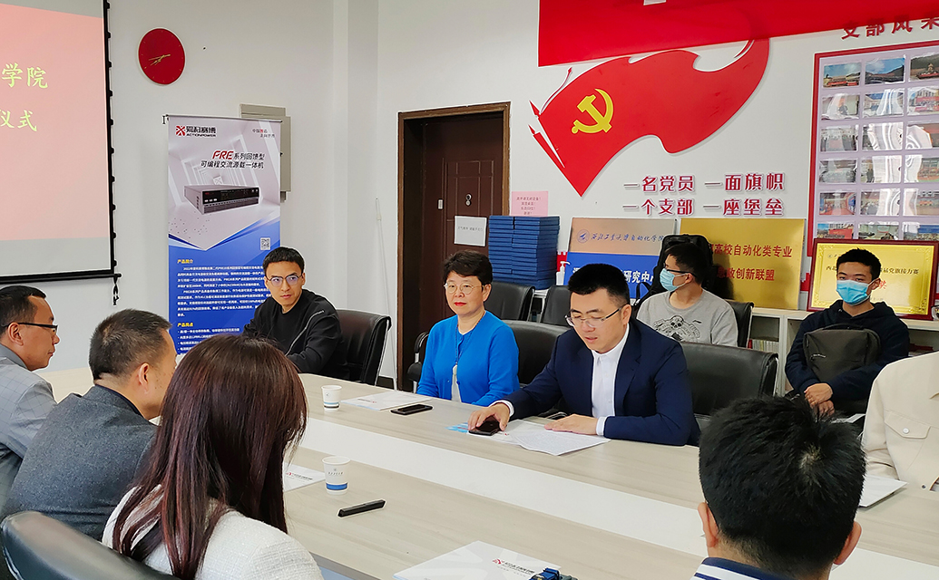 李虹書記首先歡迎并感謝愛科賽博一行的蒞臨,她在致辭中介紹了學(xué)院的發(fā)展歷史、優(yōu)秀教學(xué)成果,以及“擎電杯”科技節(jié)愛科賽博專項賽、“愛科賽博獎學(xué)金”獲獎情況。愛科賽博董事長白小青表示,愛科賽博與理工大淵源深厚,將盡力為學(xué)院人才培養(yǎng)、科研成果轉(zhuǎn)化助力,將深化與理工大的合作,共同促進(jìn)電力電子行業(yè)可持續(xù)發(fā)展。